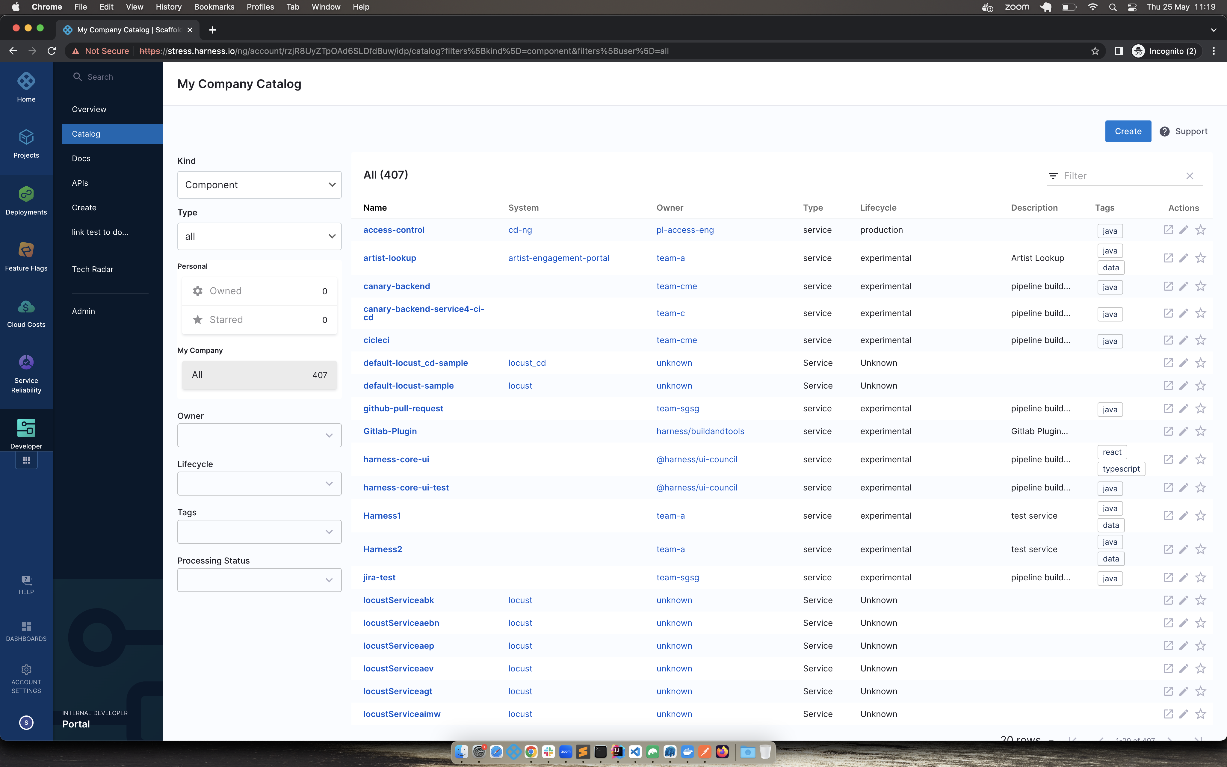 User will be shown the list of services in their account. It will be defined in terms of IDP entity i.e Harness organization is a domain, Harness project is a system and Harness service is a component in the IDP world. This list includes services at all scopes.
